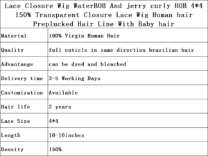 Be the first to review “12A4*4 Closure wig water/curly Brazilian human hair 短卷发”