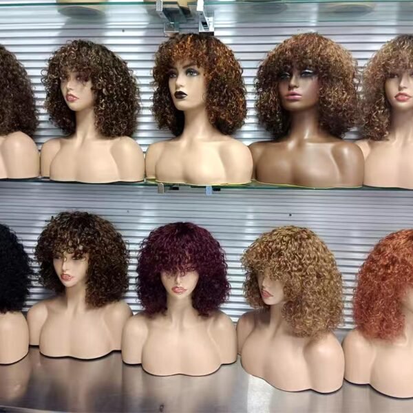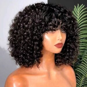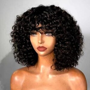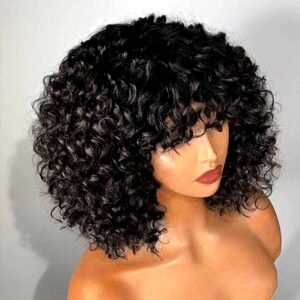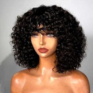 Be the first to review “12A Highlight curly wig with bangs 250% density Brazilian”